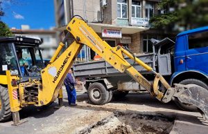 Багер копае на пътното платно на ул.“Панайот Волов“ срещу бившето СМК в областния град.