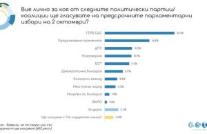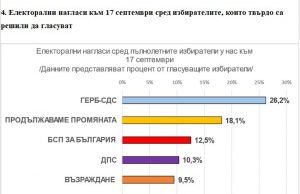 Ако изборите за 48-мото Народно събрание бяха на 17 септември, ГЕРБ щеше да е първа сила с 26.2% от гласовете, втора е „Продължаваме Промяната”,...