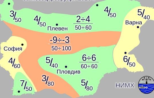 От минус 12 до 23 градуса и валежи над нормата през февруари