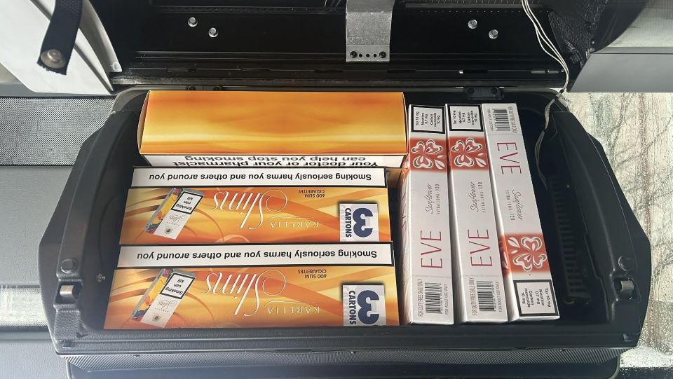 Около 8.00 часа е извършена проверка в района на автогарата в Шумен. В автобус с пловдивска регистрация, управляван от 39-годишен мъж от силистренското село Добротица, който извършвал международен транспорт, са намерени 3 600 къса цигари марка „Карелия“ слимс и 1 800 къса цигари марка „Еве“. Цигарите, без бандерол, какъвто се изисква по закон, са иззети. За извършено престъпление е образувано досъдебно производство.