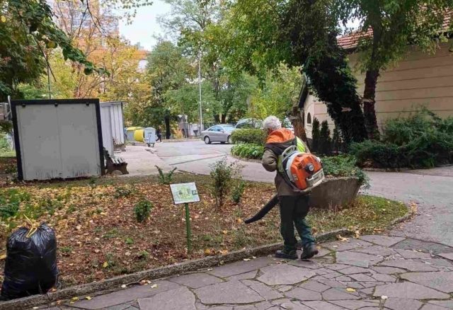 Днес се събират сухите листа в района на Градската градина и в парка на ДКЦ 1, след което се изнасят в чували и се транспортират. Извършват се дейности по оформяне и подрязване на храстовата растителност около Военното училище.