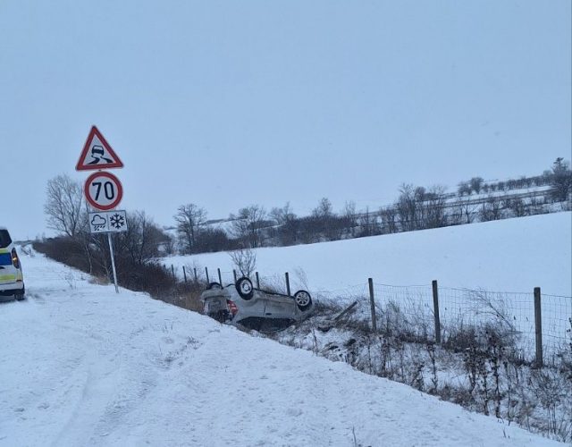 Водач на лек автомобил “Мерцедес” с шуменска регистрация загубил контрол, напуснал пътното платно и се преобърнал в крайпътната канавка. Жената зад волана е невредима.