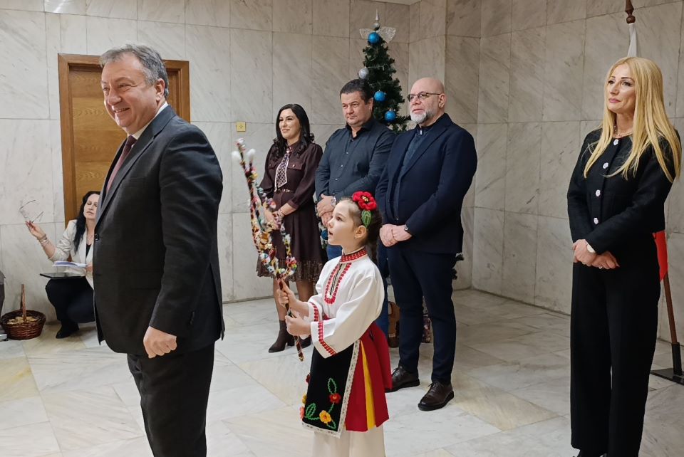 Децата от градината представиха народния обичай сурвакане и пожелаха на целия кметски екип здраве, успехи и благоденствие. За всеки ресорен заместник-кмет имаше подготвено и тематично наричане. Програмата включваше песни, танци и стихове, които допринесоха за настроението.