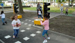 На изградените съоръжения – кръгово кръстовище, кръстовище, регулирано с пътни знаци, светофари, пешеходни пътеки, спирки и паркинг най-застрашените участници в движението ще се запознаят с основите правила за движение.