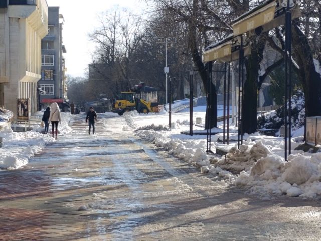 От 6.00 часа екипите на ОП „Благоустройство и комунално стопанство“ третират с препарати и инертни материали пешеходни зони, стълбища на публични места и тротоари. Чисти се приоритетно и пред социални, здравни заведения, училища, детски градини.