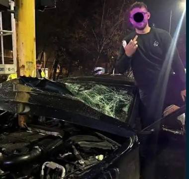 Минути по-късно младежът е сниман как показва среден пръст до помляния си автомобил.