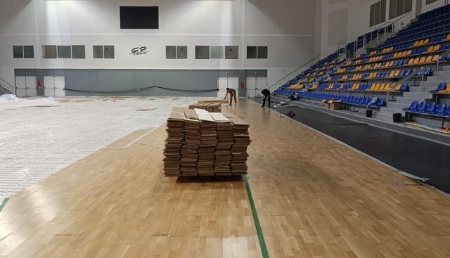 Покритието, което предстои да се постави, е от най-висок клас и съгласно най-добрите стандарти за настилки на подобен тип зали.