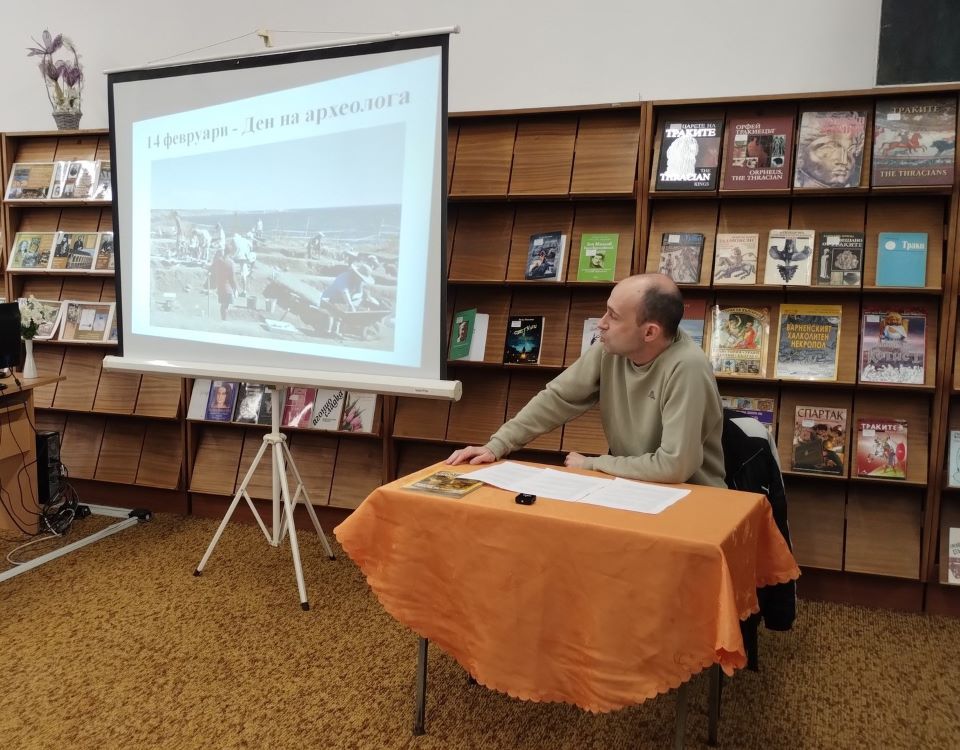 Презентация по случай 14 февруари – Ден на археолога се проведе в читалнята на Читалищна библиотека „Иван Радов“ в Нови пазар. Уредникът на Археологическа музейна сбирка в Нови пазар Светослав Георгиев представи на кратко историята на българската археология пред учениците от СУ „Хан Исперих“, водени от Валя Иванова, след което се спря на най-интересните обекти и находки в България от Каменно-медната епоха до падането на древните траки под властта на Римската империя.