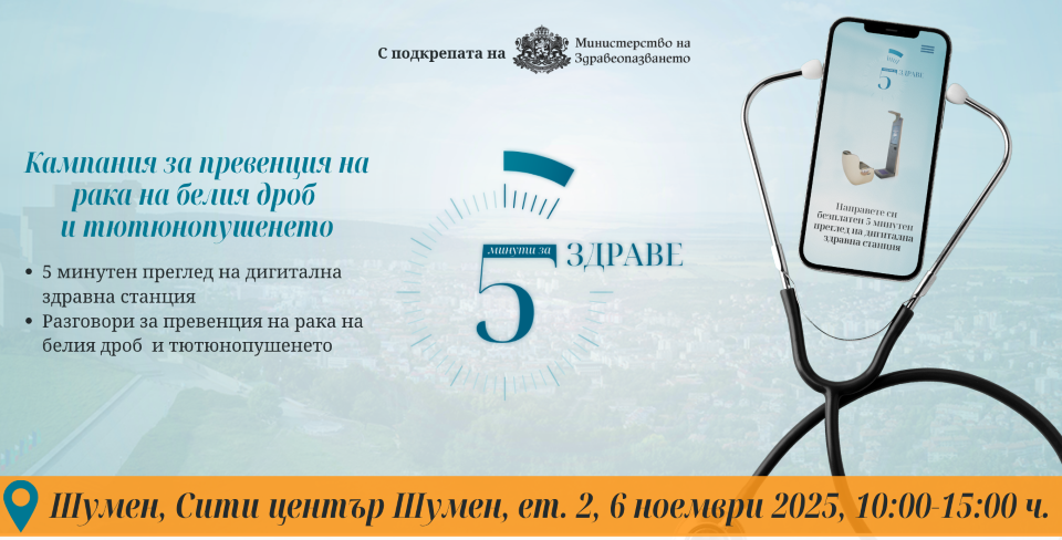 Изследванията са част от кампанията „5 минути за здраве“, която се организира от Българския клъстер за дигитални решения и иновации в здравеопазването с подкрепата на Министерството на здравеопазването, в партньорство със Сдружение „Въздух за здраве“, телемедицинската компания “Хъбис”, биотехнологичната фармацевтична компания “Рош България” и биофармацевтичните компании “АстраЗенека” и MSD, ISPOR Bulgarian Chapter и РЗИ-Шумен.