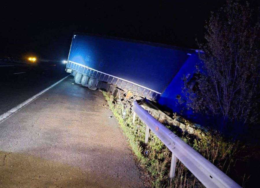 Водачът на тежкотоварния автомобил, който катастрофира тази вечер на АМ „Хемус“ е грузински гражданин. Той не е пострадал при инцидента, правоспособен е, тестът за алкохол е отрицателен.