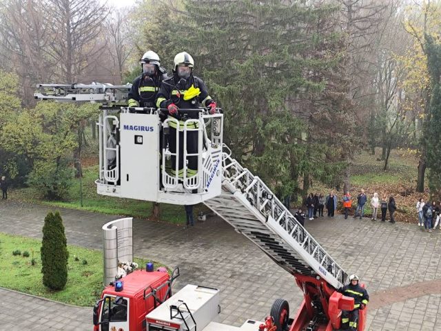 Минути след получаване на сигнала, екипи на „Пожарна безопасност и защита на населението“ бяха в ШУ“ Епископ Константин Преславски“. Там, след силния трус е възникнал пожар и се е разраснал. Голяма част от студентите и преподавателите успяха да се евакуират от учебния корпус, но силно задимяване възпрепятства част от студентите да се евакуират сами. Един от тях е тежко обгазен. Евакуацията е извършена след като му е осигурен кислород с помощта на качулка и със специализирана носилка е изведен с помощта на авто-механична стълба.