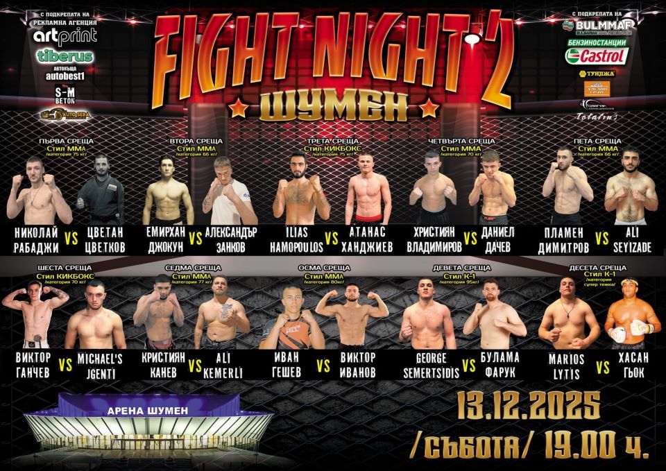 За втори път на 13 декември Шумен ще бъде домакин на Международна гала вечер „SHUMEN Fight night II”. Битките започват в 19.00 часа в зала „Арена Шумен“. Това съобщиха организаторите на състезанието.