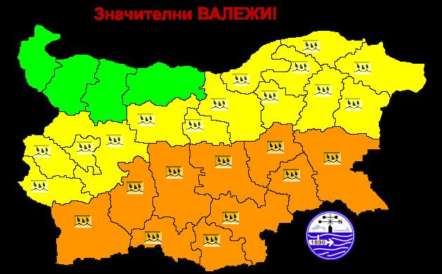 Жълт и оранжев код в страната за интензивни валежи (карта)